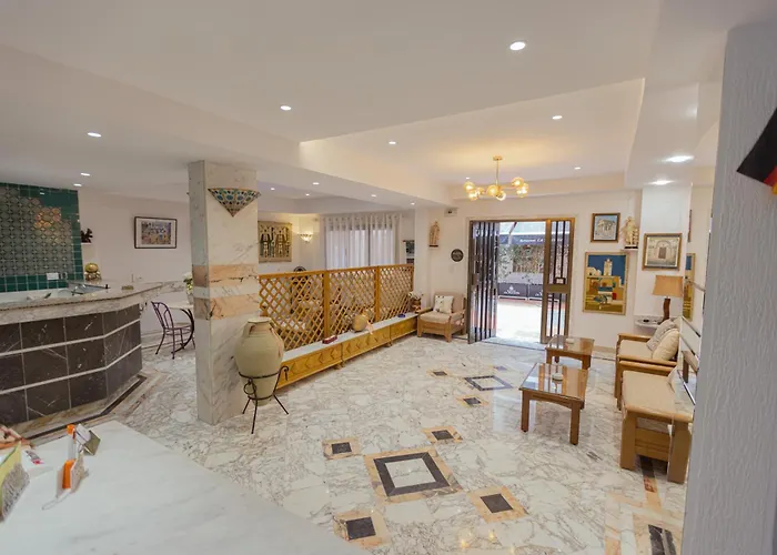 Situé sur la plage de sable, à moins de 25 minutes de marche de Médina de Sousse, cet hôtel agréable de 3 étoiles Hotel Marabout Sousse offre des toboggans aquatiques, un parcours de golf et un jardin. Cet hôtel charmant dispose d'un bar lounge et bénéficie d'un bel emplacement à 10 minutes de Riadh Palms.